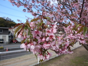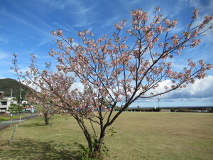 大型遊具付近のヒマラヤザクラは見頃を迎えております