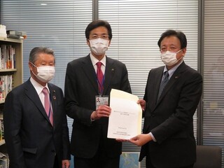 静岡県市長会・町村会から静岡県知事に対し「新型コロナウイルス対策に関する緊急要望」を行いました。