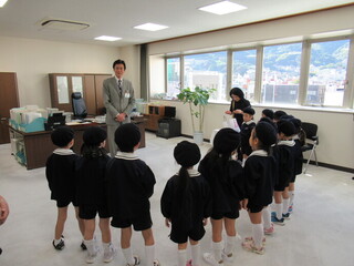 富士保育園の年長園児が勤労感謝の日を迎えるにあたり、市長に感謝の気持ちを伝えたいということで訪問してくれました。